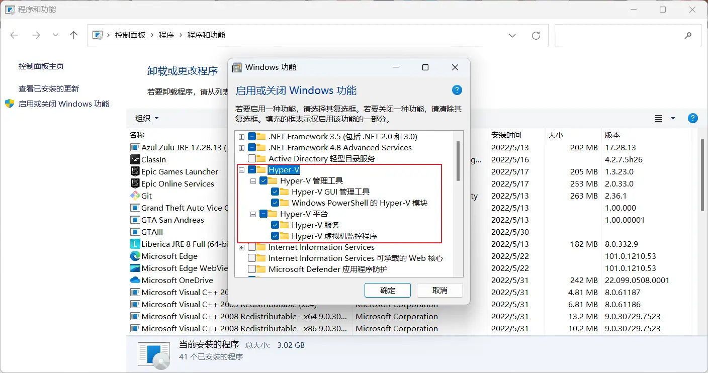 安装 Hyper-V 相关服务
